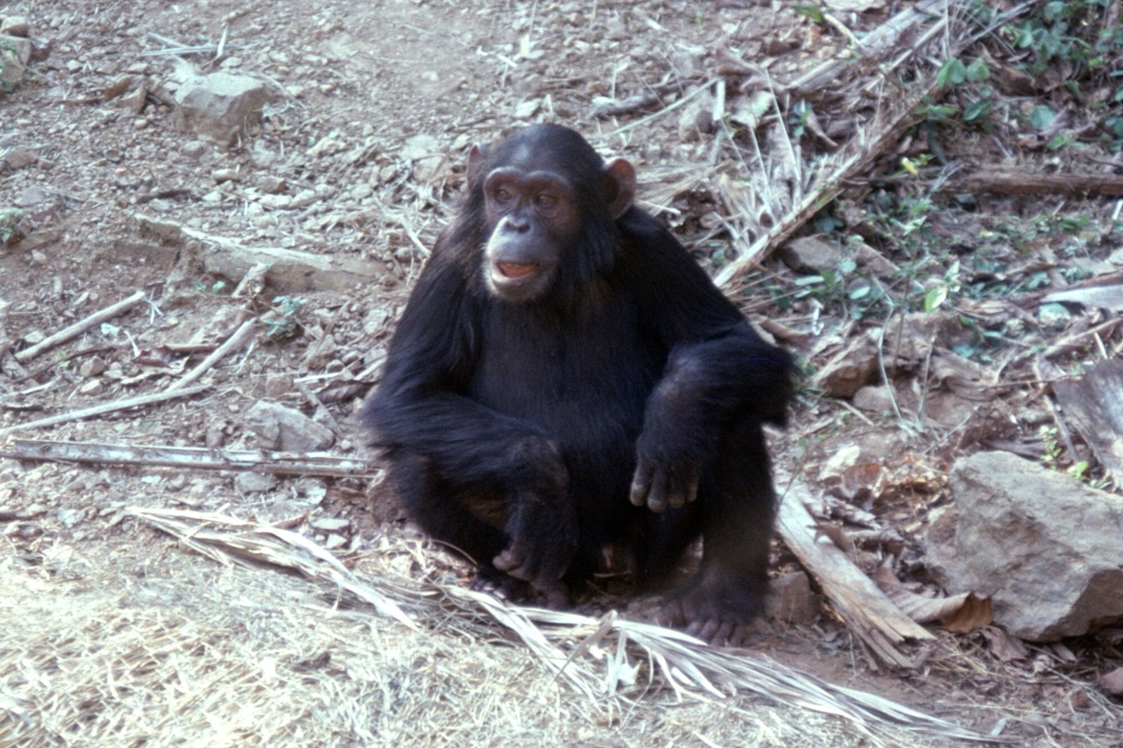 Nine-year-old male, Mustard, sits in camp. He was rarely far from his mother, Nope (no photos available).
