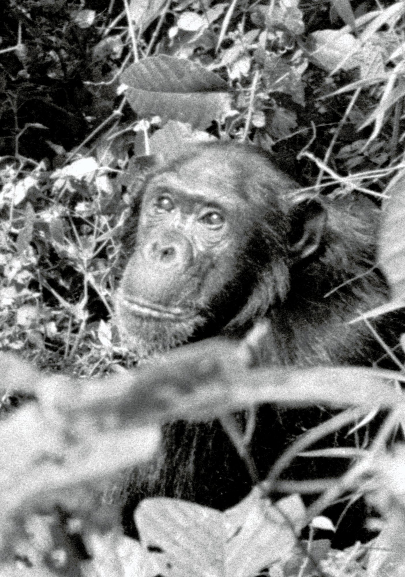The chimps rushed down (Figan and Faben silently displaying) into the KK6 valley and later met up with Jomeo and Sherry, who soon left to the east. Figan and Faben left Gigi and Patti behind after grooming and traveled to the Kakombe stream to feed on ngazi, muguiza, and another leaf tree. They headed to Camp and were re-joined by Patti en route. They were given bananas, though Figan ended up with the majority due to poor timing on box opening. Patti and Faben begged and there was an encounter with a baboon and a subsequent attack on Patti by Figan and Faben. Atlas groomed Figan for 12 minutes before they left to the north again. This time they stopped to feed on mnazi on the route near Plum Tree.