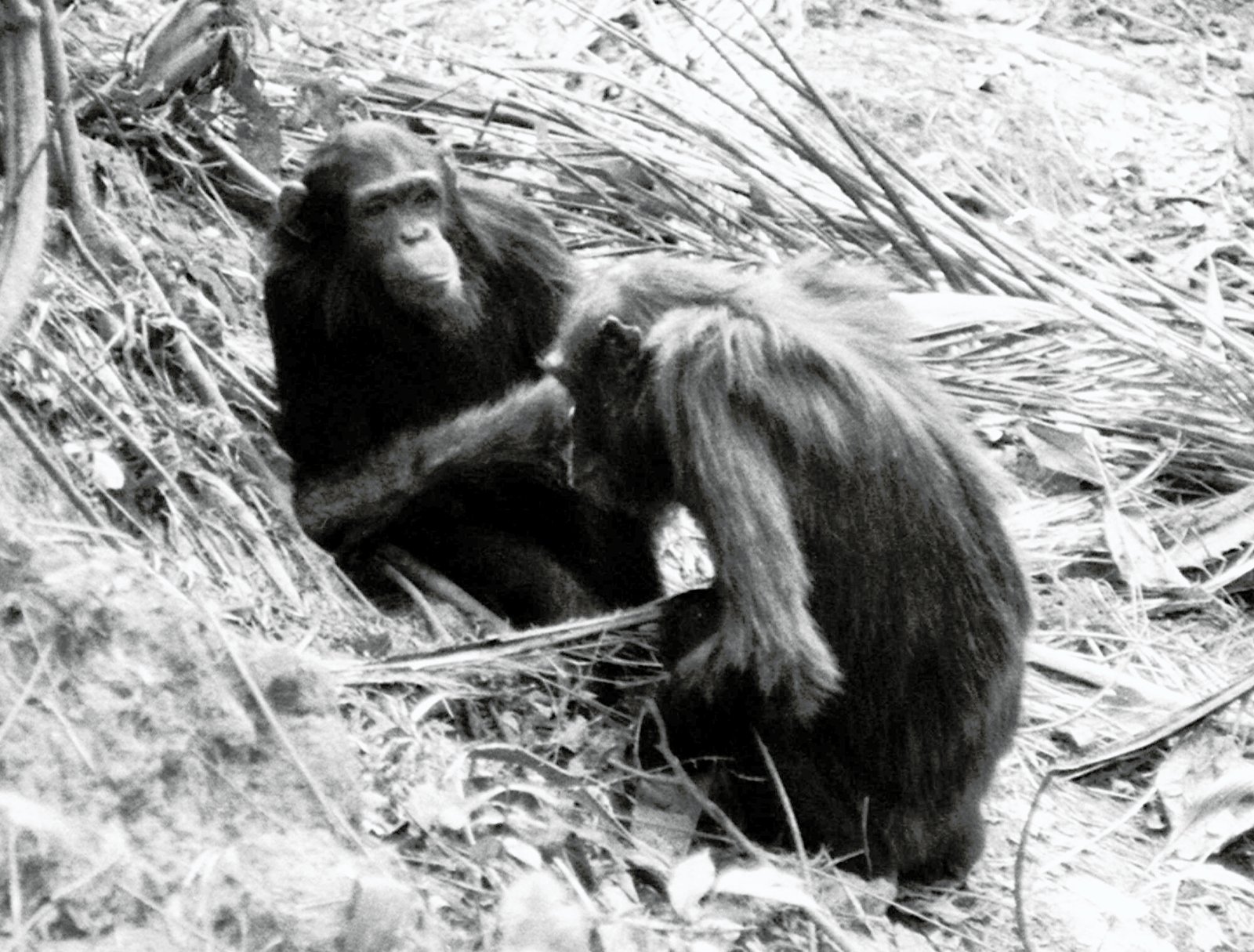 Adolescent female Honey Bee (age 9) watches her mother, Madam Bee, “fish” for ants (siafu) in Kahama valley. Like Faben, Madam Bee lost the use of an arm during the 1966 polio epidemic. ![]()