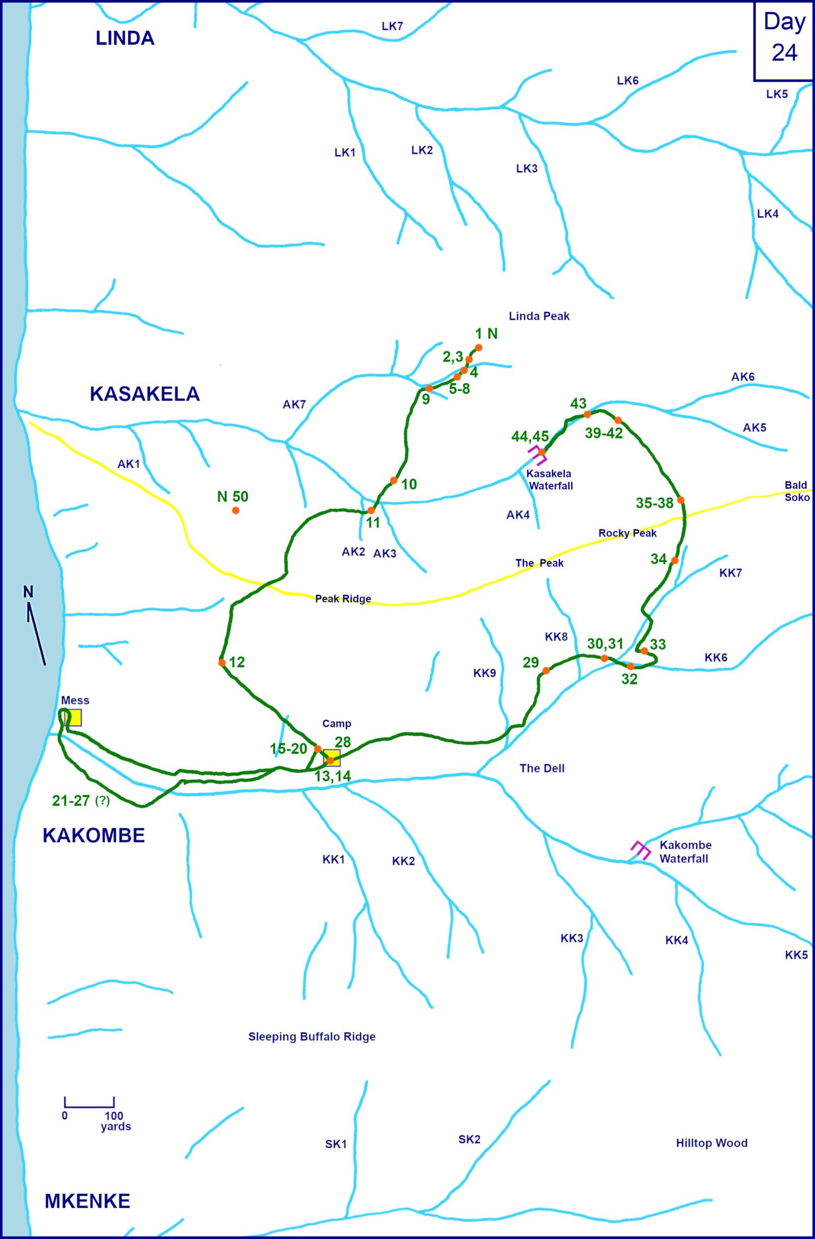 Looking straight down from the top of the dry Kasakela waterfall, where Figan lost us for an hour. ![]()