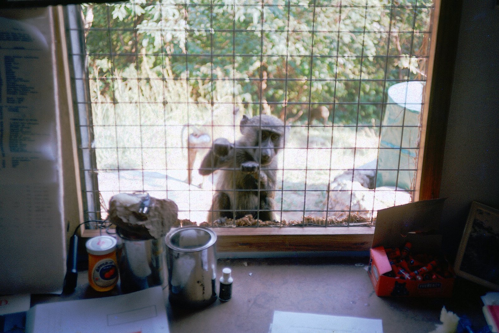 A curious youngster looks in at David’s desk in the main research building (aka Pan Palace) at the Feeding Station.