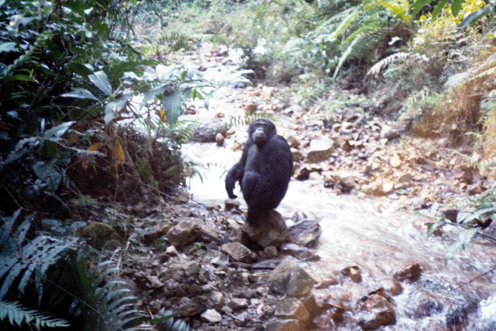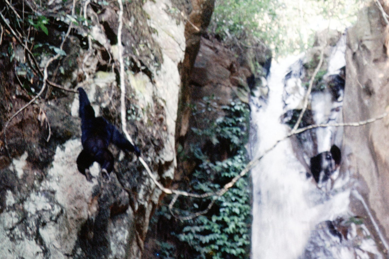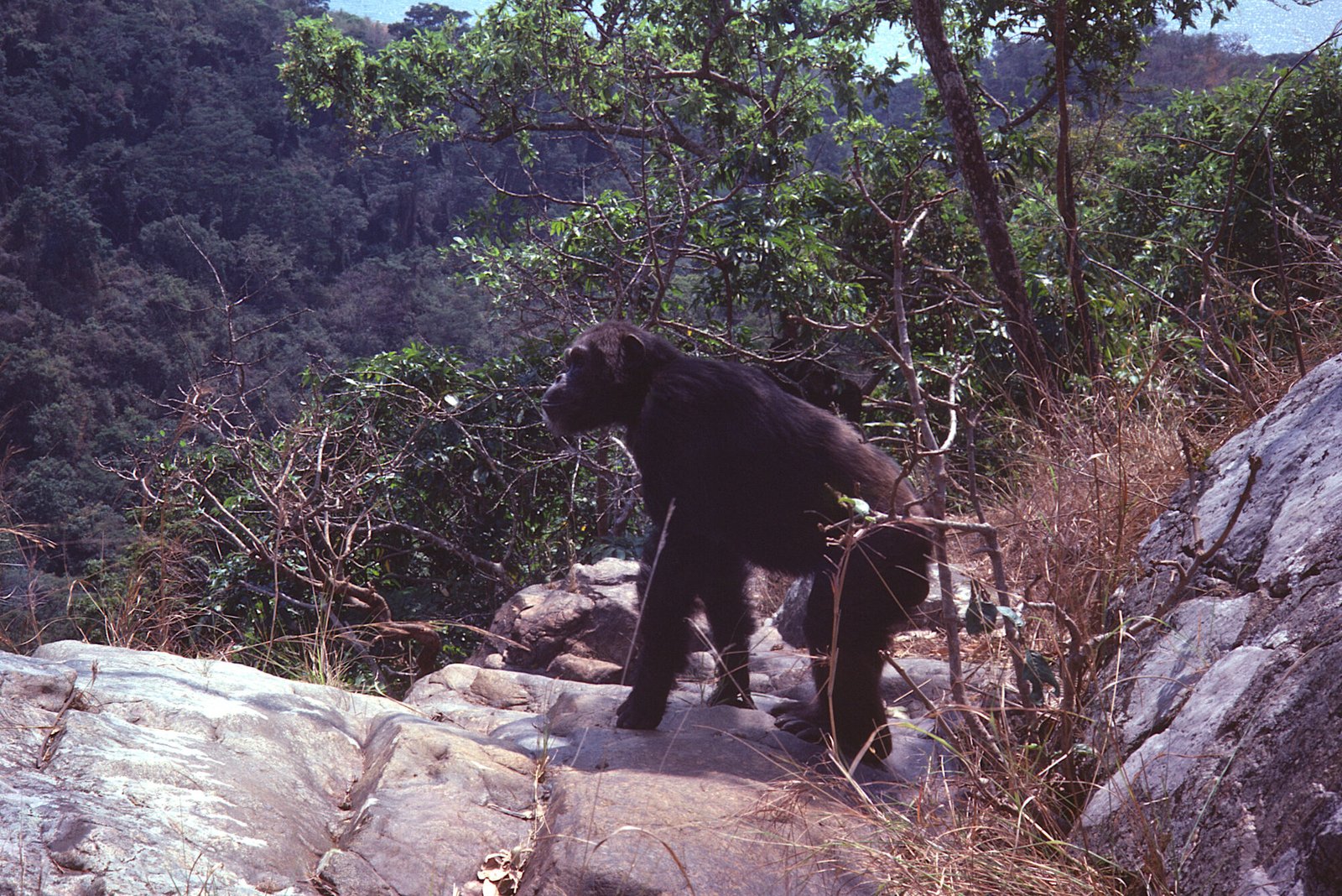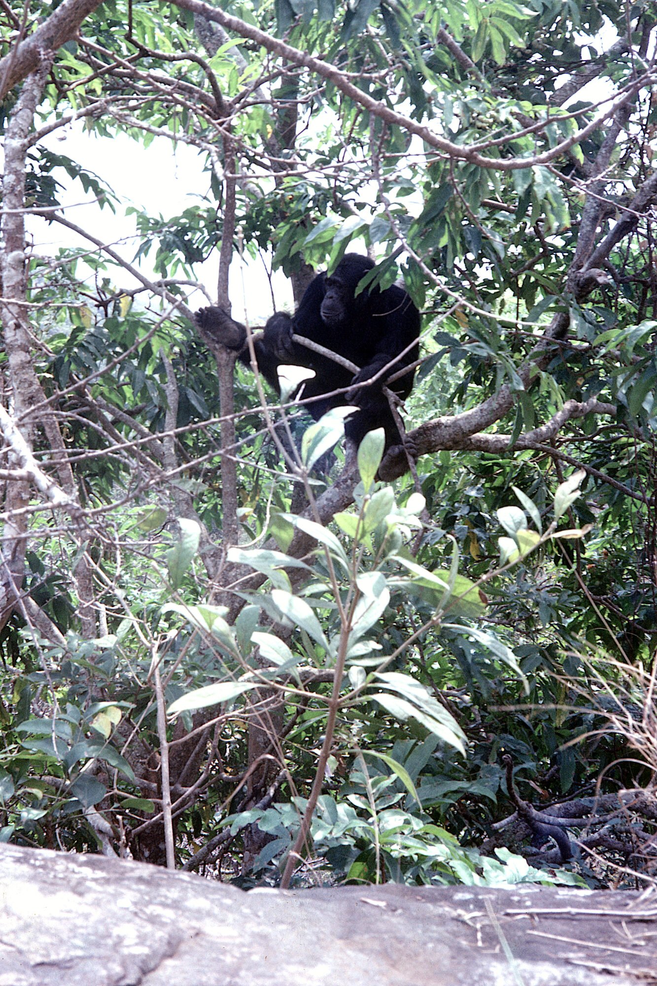 These same behaviors were later observed along streambeds and at waterfalls. In 1969, Harold Bauer saw an adult male chimp display or “dance” at a waterfall. This observation was cited as a possible instance of a non-human animal demonstrating a sense of wonder,2 a view championed by Dr. Jane (below). Waterfall displays are spectacular albeit uncommon. During their combined ~1,600 hours observing adult male chimps at Gombe, Curt and David witnessed a grand total of four displays at the Kakombe waterfall.
