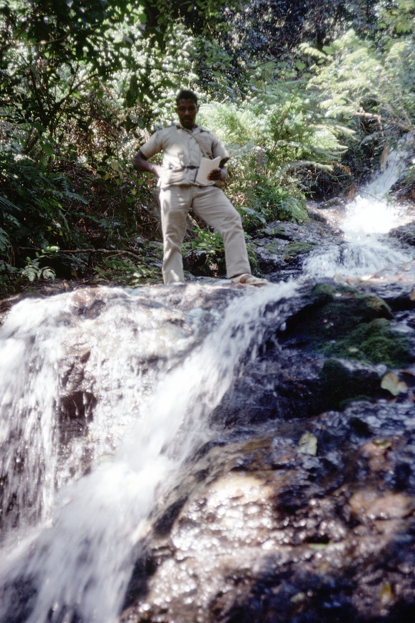 The Kakombe waterfall, approximately 65 feet tall, as it looked in July, 2024, fifty years after the Figan Follow (photo by Curt Busse). ![]()
