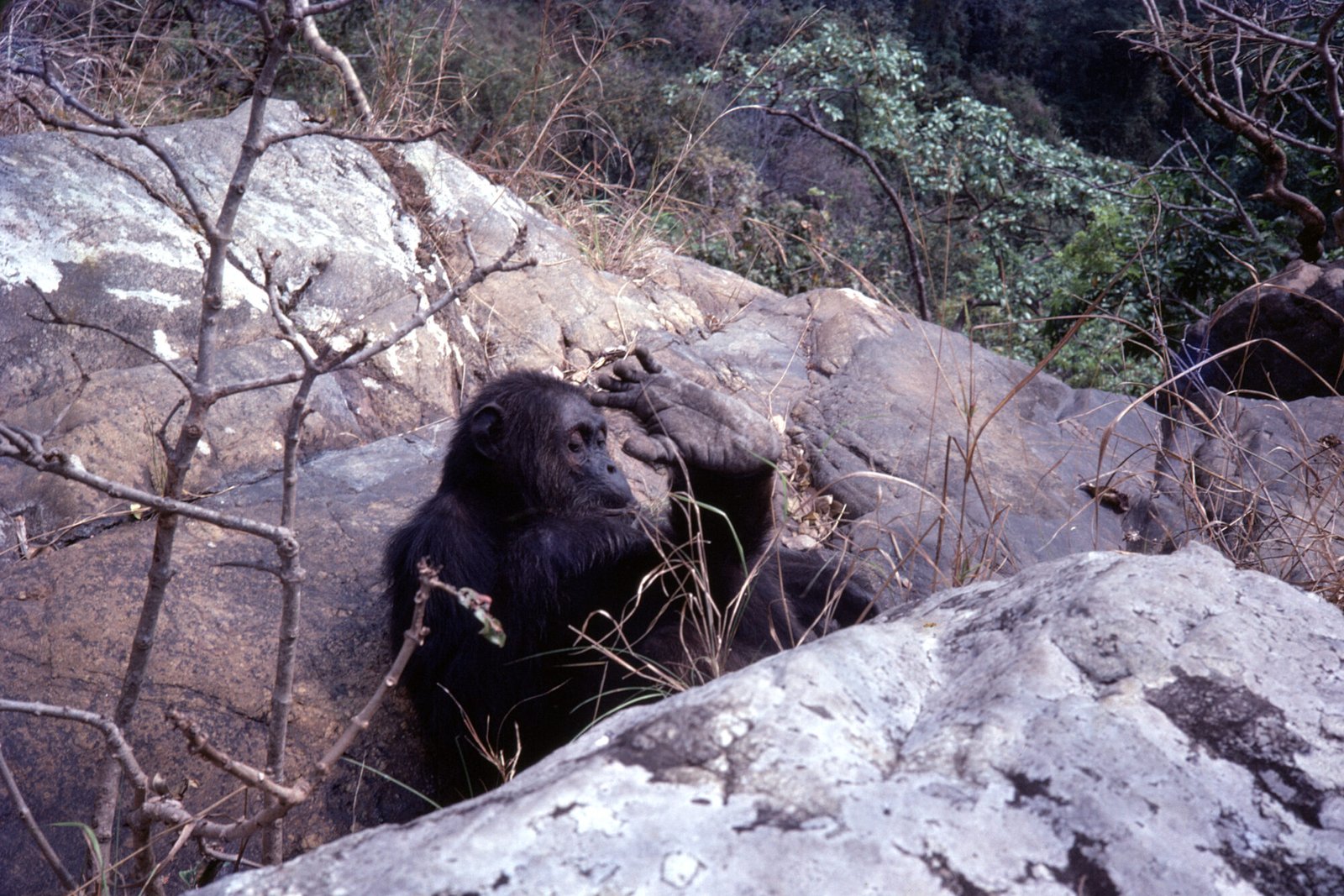 - One morning in February, 1974, Curt was getting drenched while watching Figan perform a wild rain dance during a torrential downpour. Without warning, Figan charged at Curt from behind, knocked his legs from under him, and dragged him twenty feet downslope by the ankle. No harm, no foul. (Figan weighed 90 pounds; Curt 180). During eight months, this was Curt’s only physical contact with a chimpanzee. ↩︎